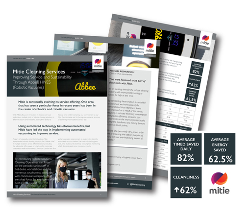 Mitie conducted multiple trials of the Abbee Hive robotic vacuums across various sectors to test the efficiencies they could deliver to their cleaning technicians. This case study examines the results of these trials and showcases the fantastic results in terms of time saved, floor cleanliness and energy consumption.